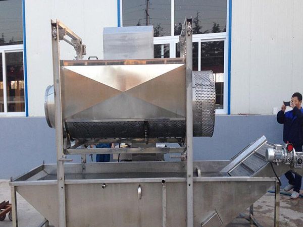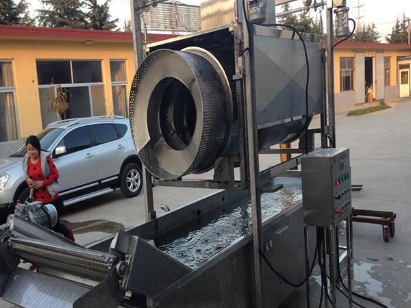 適用于莖類腌漬菜的清洗,在滾筒內通過毛刷的刷洗,上部高壓水噴淋,通過螺旋控制出料時間,使水果得到徹底的清洗。本機噴淋水前端采用循環水,后端為自來水,使能源得到節約。